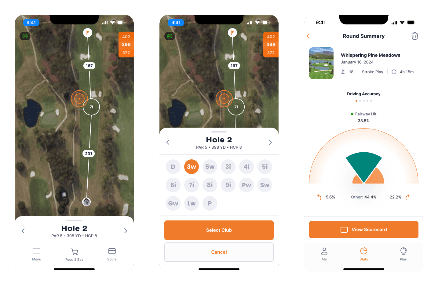 Golf tech was crowded but fragmented. GPS yardages, digital scorecards, and swing tracking all lived in silos. No product integrated the full on-course experience—real-time food ordering, environmental data, and staff-side analytics in one loop. And golf courses are notoriously slow to adopt new software, so Drift's solution had to be advanced and drop-dead simple with zero hardware dependencies (except one clever exception: a cart-mounted wind sensor aggregating ground-level environmental data).