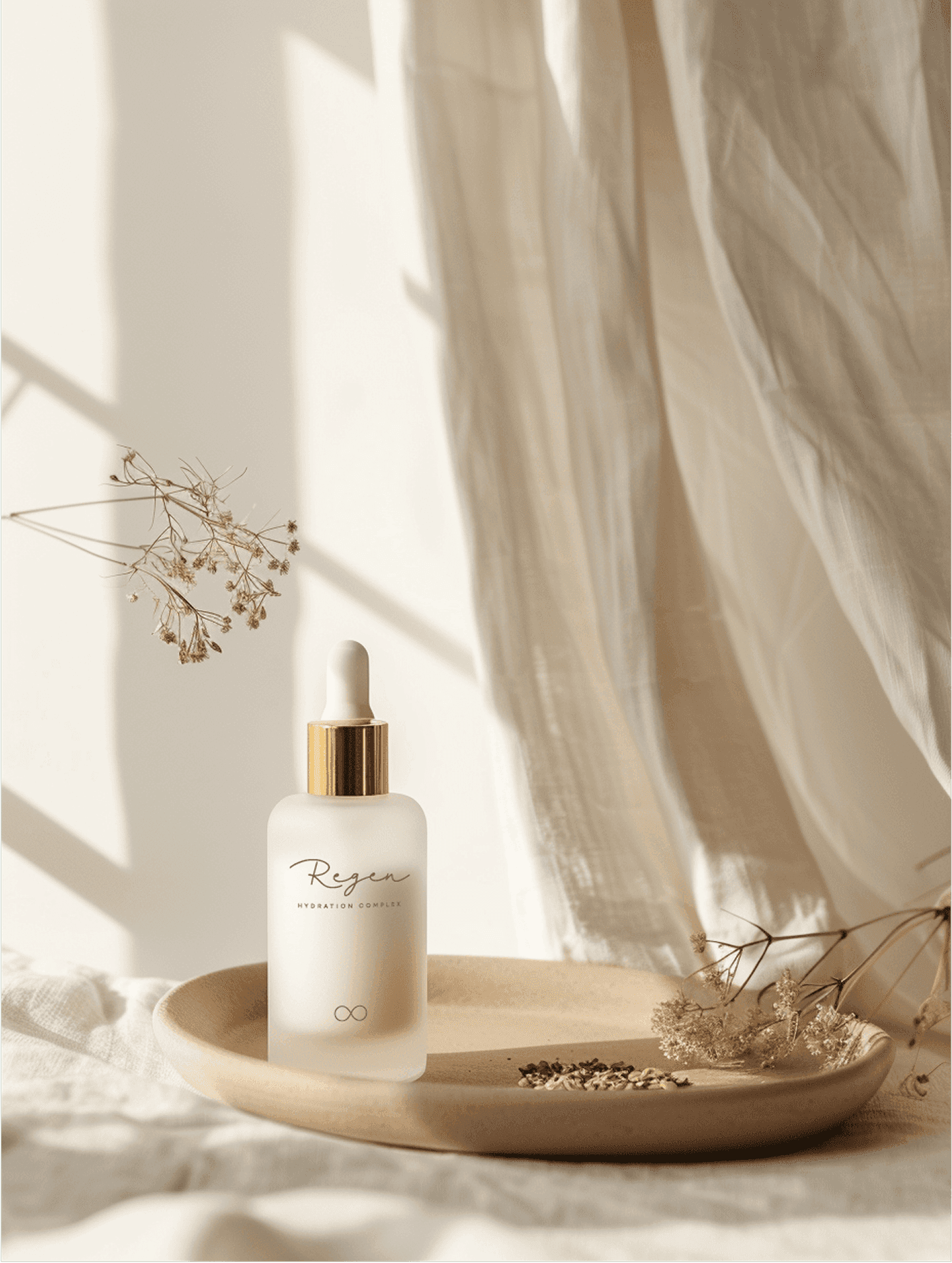 Unlike a standard infinity symbol, which reads as geometric and cold, the double-moon version carries organic warmth. It reads as a symbol first and reveals its lunar origin on closer inspection. That layered legibility gives the mark depth without requiring explanation.