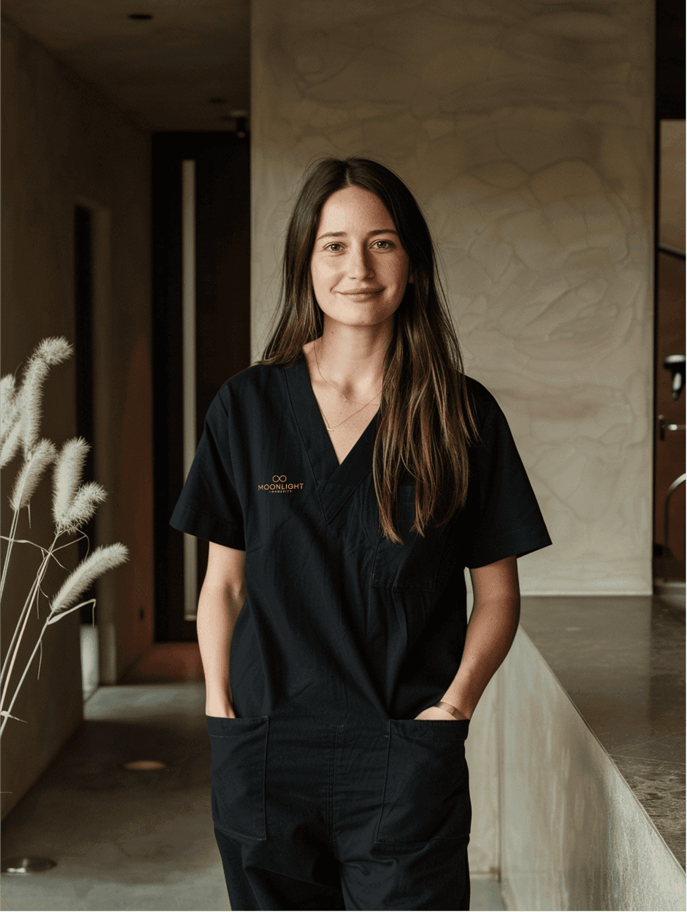 The foundational positioning came from Moonlight's philosophy that beauty is biological and that aesthetics and longevity are the same conversation. That became the basis for every design decision. But the deeper layer was psychographic. This clientele sees itself as distinct, and they gravitate toward experiences that reinforce that identity. The brand had to evoke a private club rather than a clinic. Color, typography, spacing, photography direction, and even service descriptions all flowed from that positioning.
