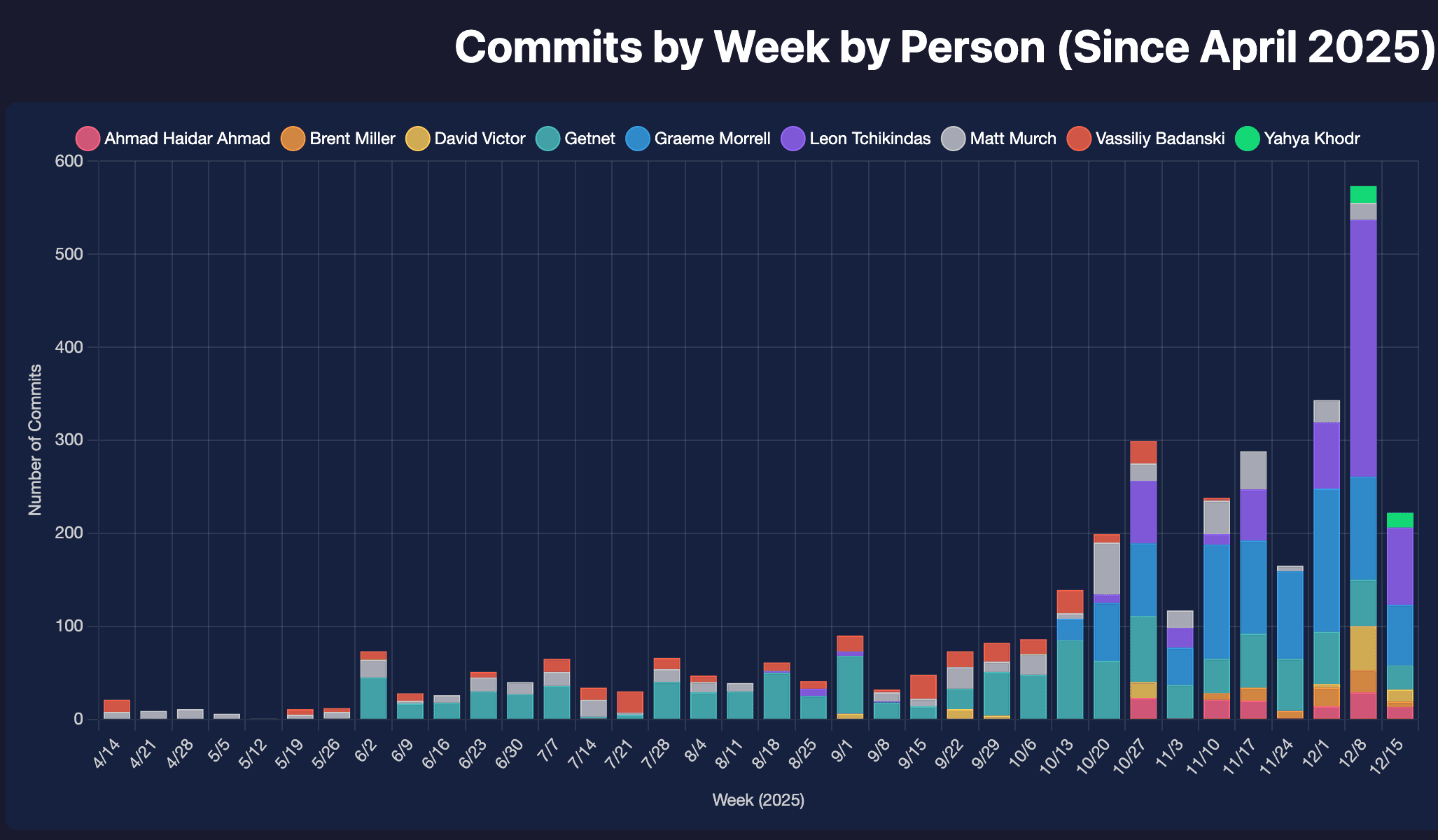 Commits per week | ~50 | 300+ (peak: 570) |